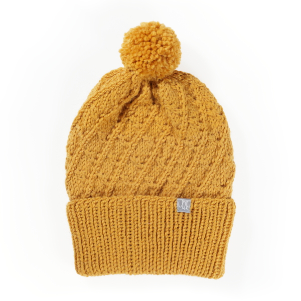Paksemast lõngast käsitsi kootud laia ära keeratud servaga soe talvemüts. Mütsi sügavust saab veidi reguleerida serva keeramise kõrgusega.