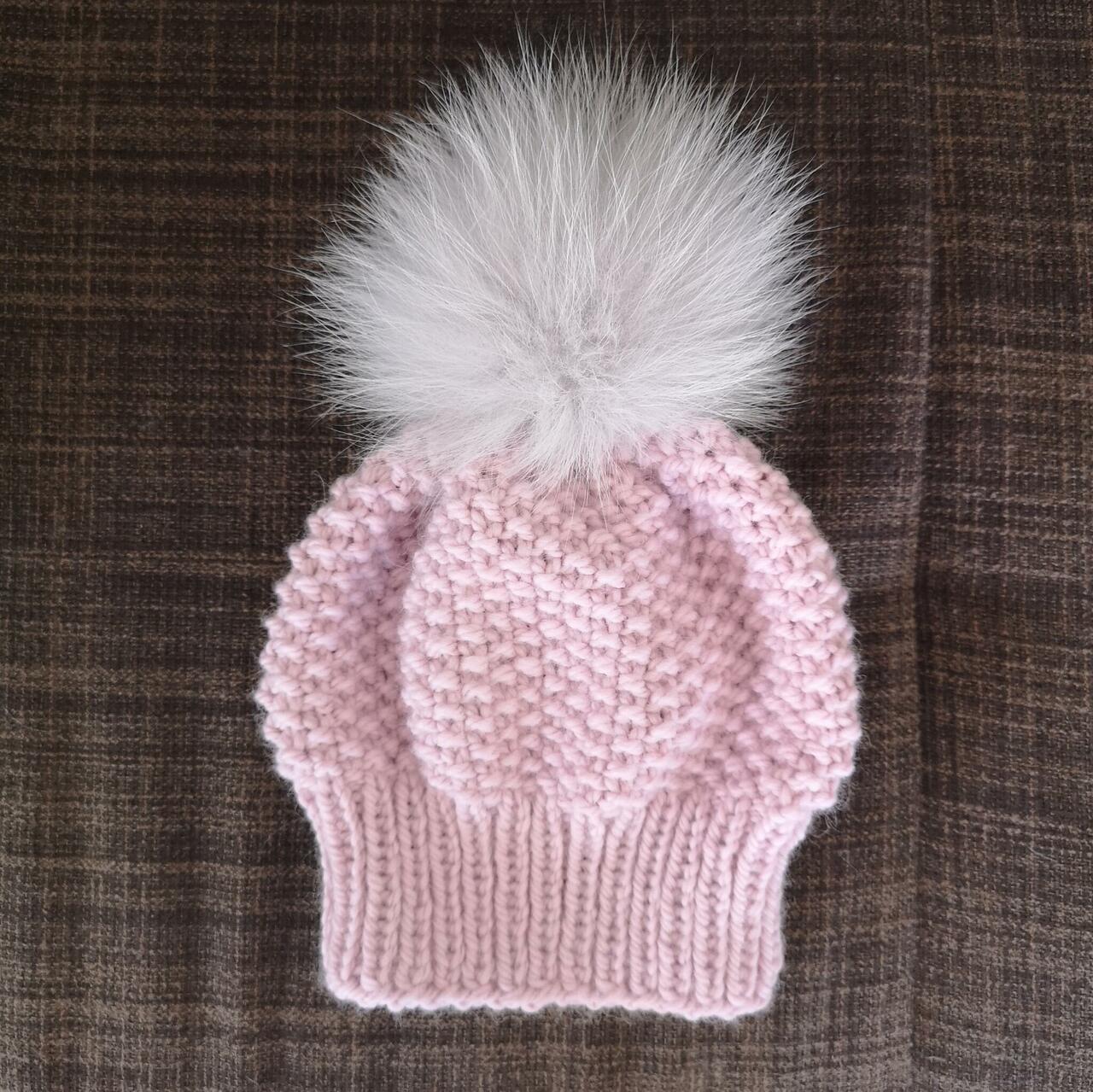 Paksemast lõngast pärlkoes müts on kootud varrastel.